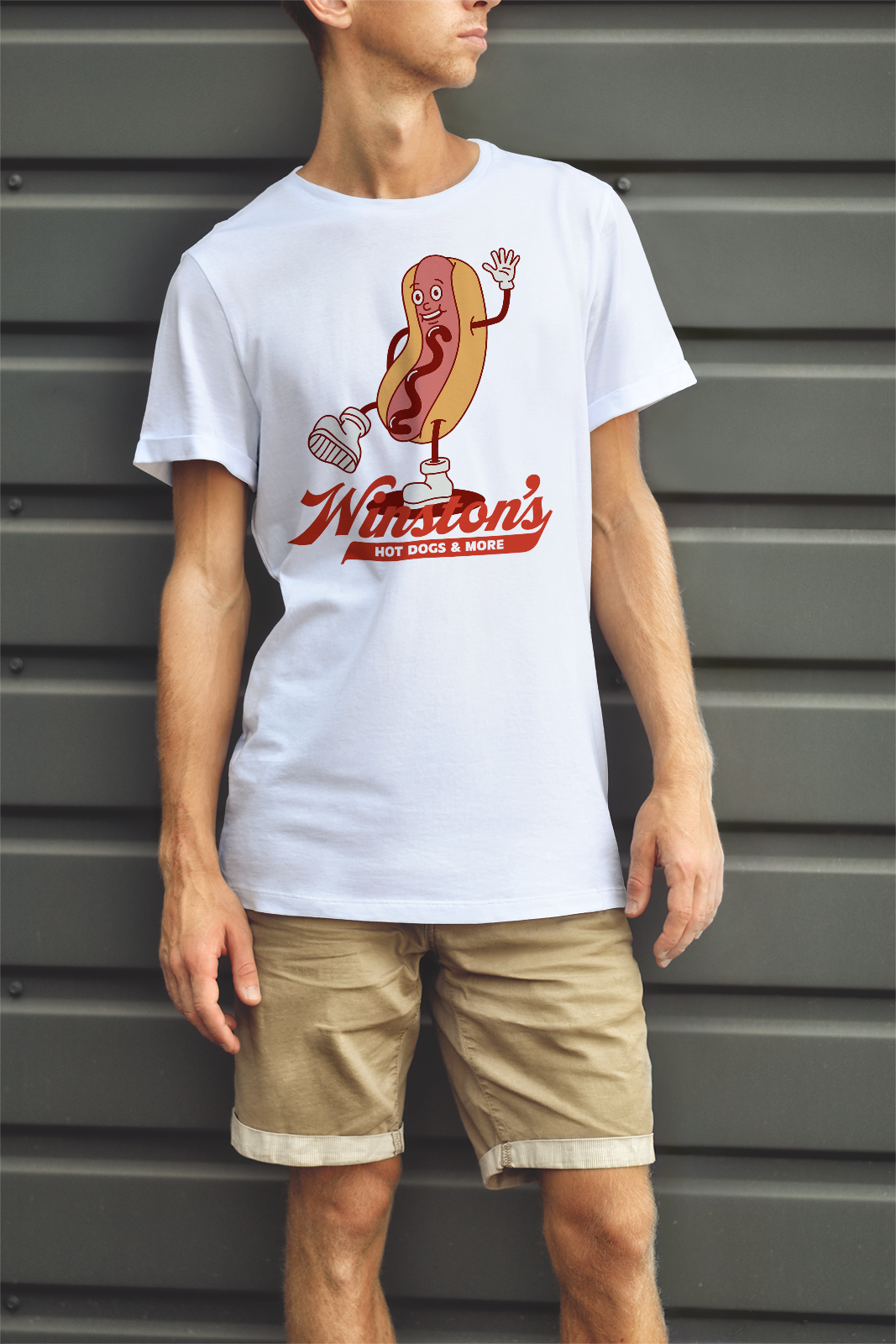 To start, I designed a vintage-inspired mascot: a smiling hot dog with a little attitude, pulled from the spirit of mid-century Americana. It feels like it could’ve lived on an old roadside billboard or a matchbook cover from a drive-in. Playful and approachable, the mascot was meant to feel familiar, nostalgic, and a little unexpected—something that makes people stop and smile. The mascot incorporates a warm golden yellow, adding energy and warmth exclusively to this character, helping it pop with personality.